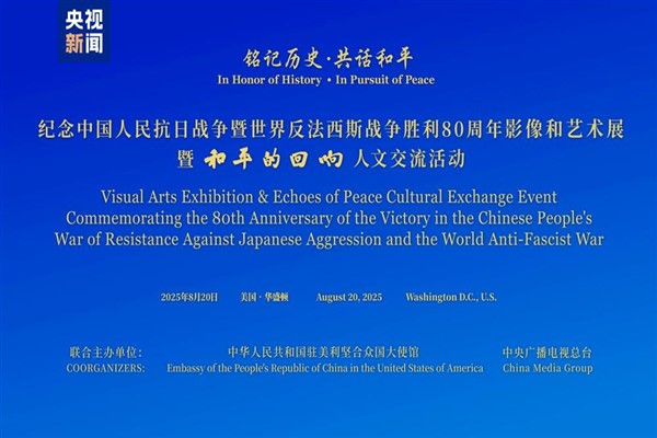 "Çin Halkı'nın Japon Saldırganlığına Karşı Direniş Savaşı" ve "Dünyanın Faşizme Karşı Savaşı"nın 80. yıl dönümünü anmak için organize edilen fotoğraf ve sanat sergisi ile “Barışın Yankısı” adlı kültürel etkinlik, Çin'in ABD Büyükelçiliği ve Çin Medya Grubu (CMG) tarafından ortaklaşa olarak Washington'da düzenlendi. ABD'den 200'den fazla ekonomi, sanat ve medya dünyası temsilcisi etkinliğe katılım sağladı.
