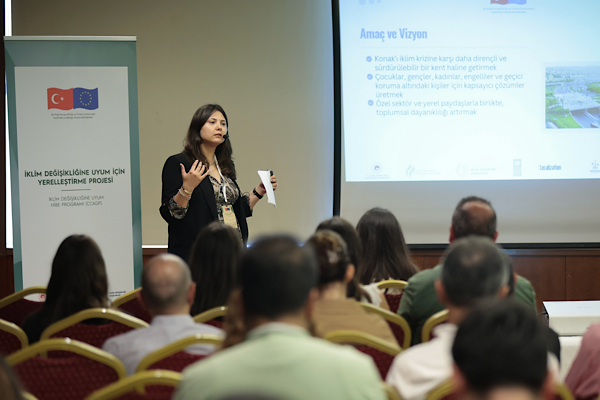 Sosyal İklim Derneği Yönetim Kurulu Başkanı Gaye Tuğrulöz de Konak Belediyesi’nin iklim çalışmalarına verdiği desteğin önemine işaret etti. Tuğrulöz, “Konak’ta bu yoğun süreci genç iklim elçileriyle yürüttük. Bu süreci özel sektör ve kamu temsilcilerinin yanı sıra çocuklar, gençler, kadınlar, engelliler ve geçici koruma statüsündeki kişilerle de geçirdik. Bu katılımcı özelliği bizim için ayrıca anlamlı” dedi.
